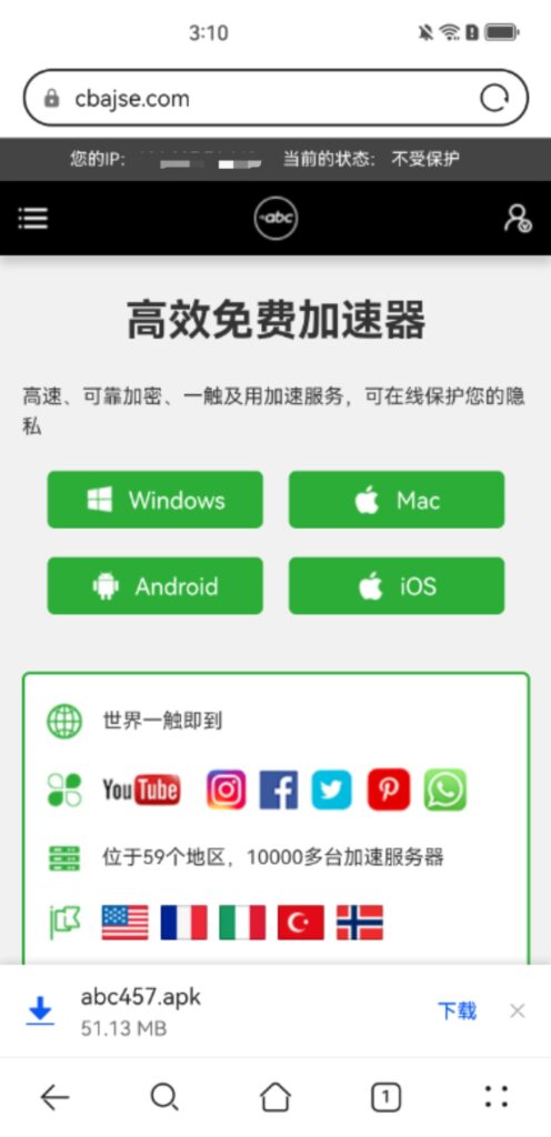 ABC 加速器提供了不同端口的应用程序,包括 Android、iOS、Windows、Mac ,对应的下载渠道在官网里面就有提供,你点击其按钮下载安装即可。