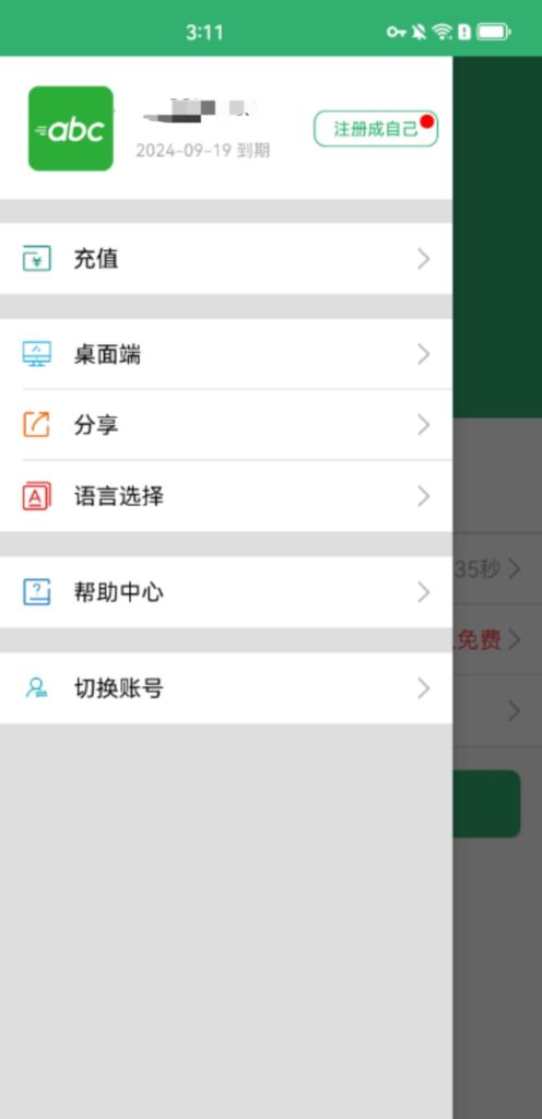 然后进入主页面,开始使用,从图上我们就能看到,这个【到期时间】,就是 ABC 给新用户的体验时间,你有一个小时的时间可以自己进行测试,满意了再去买会员。