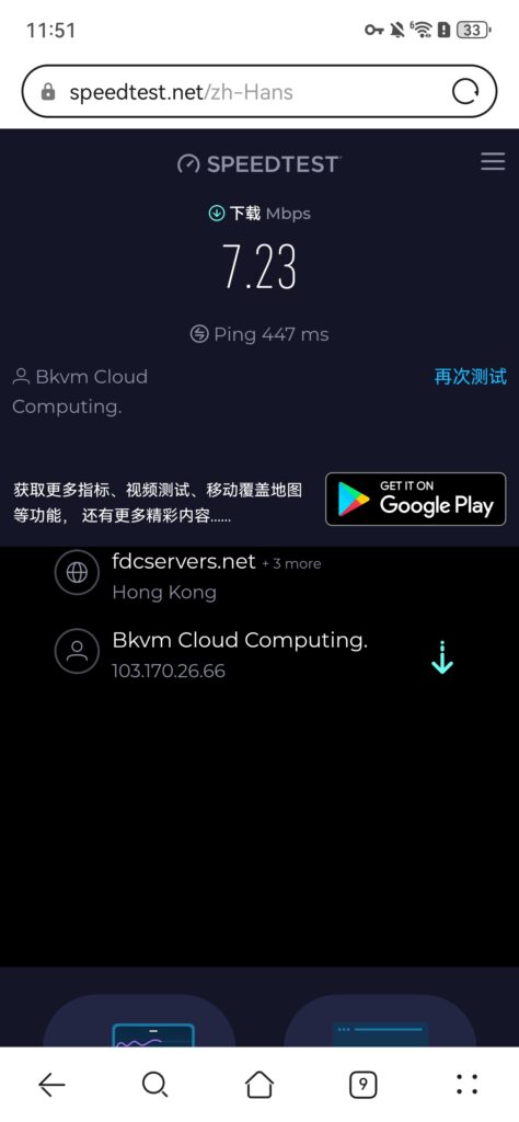 在连接狗急加速器之后,我进行了两次测试,测试结果为: