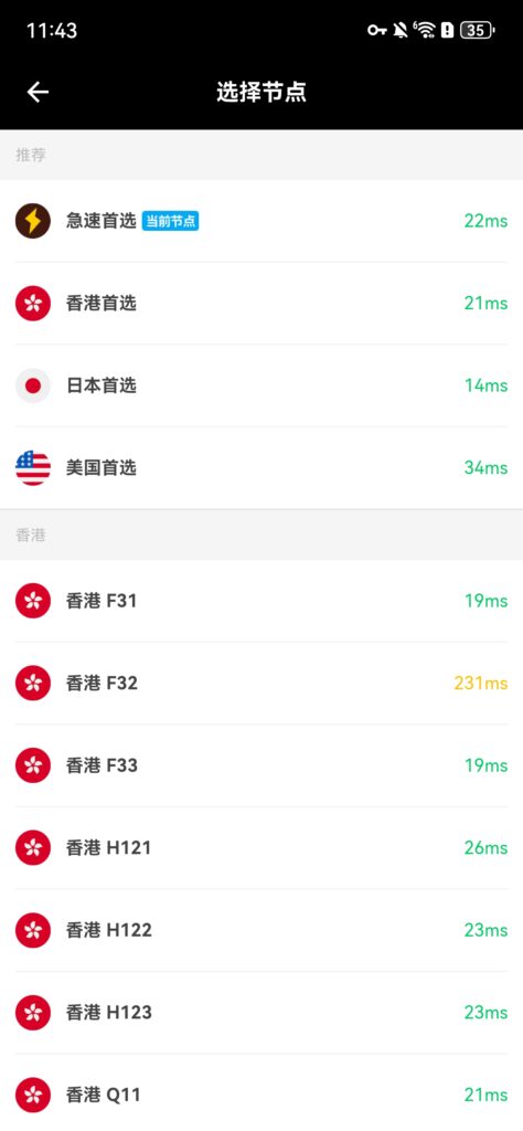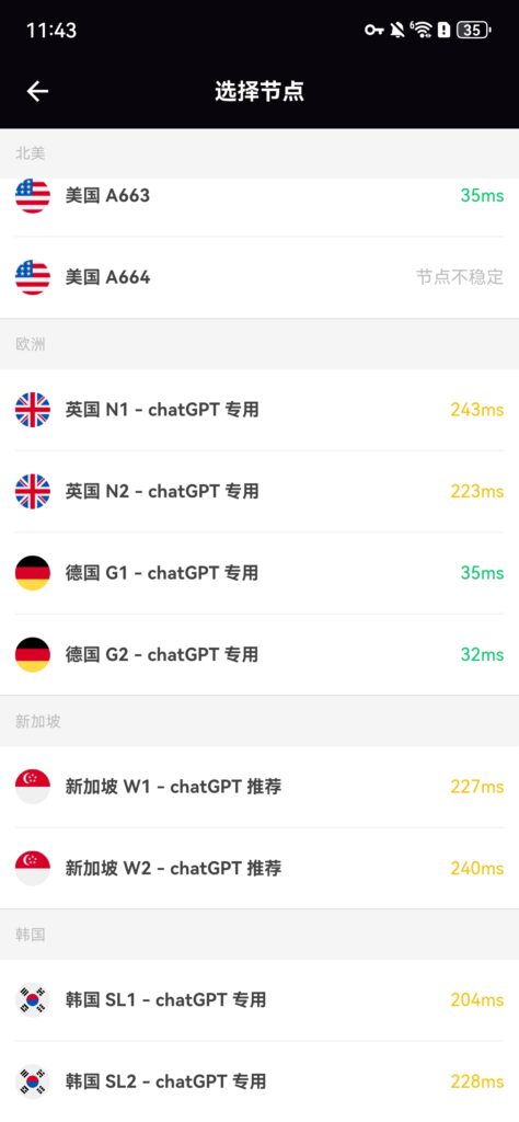 从图上也能看出来,每个线路右侧都展示了该线路当前的连接状态,所以你可以自主选择当前比较畅通的线路,也就是绿色线路,黄色就是比较延迟的,不推荐你考虑,非常不推荐你考虑的,狗急会直接写“节点不稳定”,这还蛮方便的。