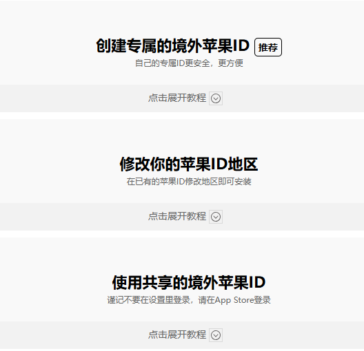 如果你只有大陆的苹果 ID,那么你需要完成三组详细的操作流程,建议大家在官网后台内进行阅读,这里涉及到了 APPLE ID 账密的问题,所以我也不方便展示了: