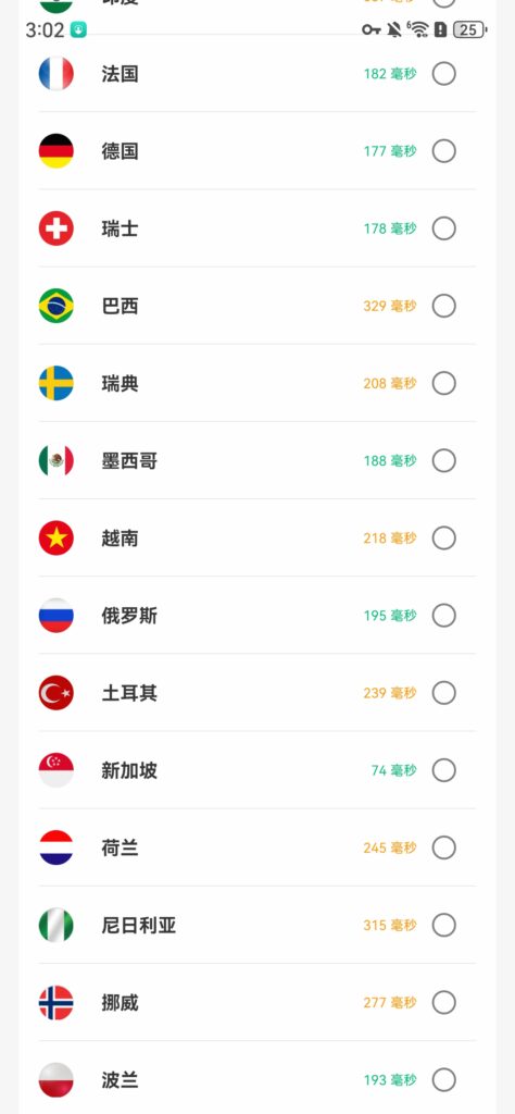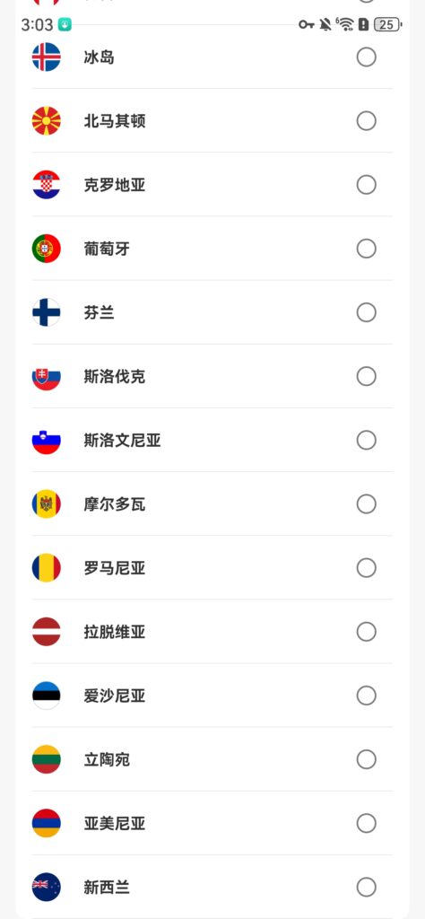 先说免费的,你可以连接的线路如下图所示,我这里截的都不算全面,我粗略的数了一下,一共提供了62个国家地区的线路,热门的国家地区自然不必多说,美国、香港、日本,这些都是必备的,冷门的更是观感,什么罗马尼亚、立陶宛、克罗地亚、甚至冰岛都来了,这覆盖范围完全堪称覆盖全球了吧: