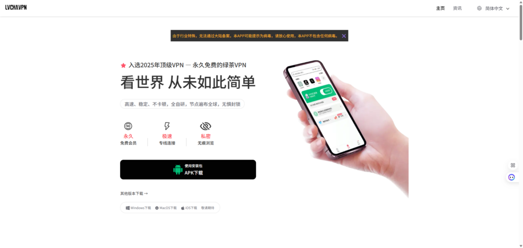 绿茶加速器的使用操作非常简单,首先你得在网站内找到它的下载按钮,绿茶官网是直接提供 apk 安装包的,所以你下载安装就完事了,不需要再去第三方。