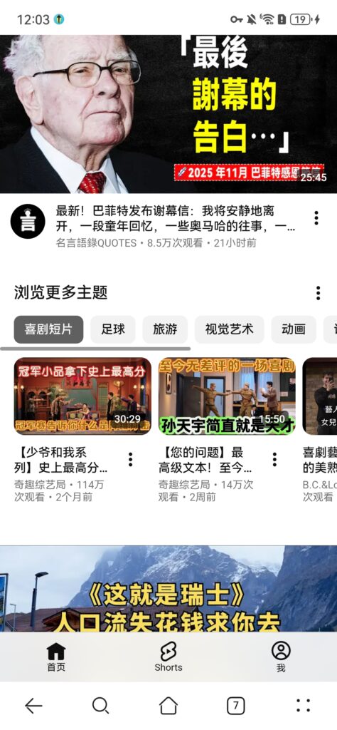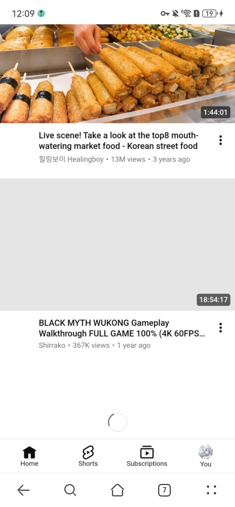 只不过,结合网速的表现来看,蓝灯加速器在流媒体加载、以及播放速度上,都还是有点上升空间的,如图所示,我在访问油管首页的时候,就能明显感觉到它的加载不够流畅,需要有缓冲的时间: