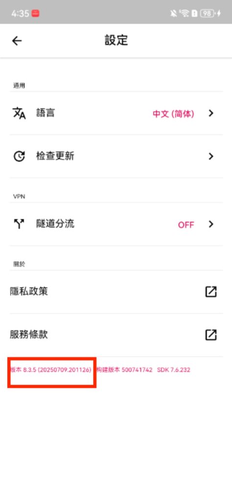 我这里安装了看了一下,蓝灯加速器目前最新版的版本号是 V8.3.5: