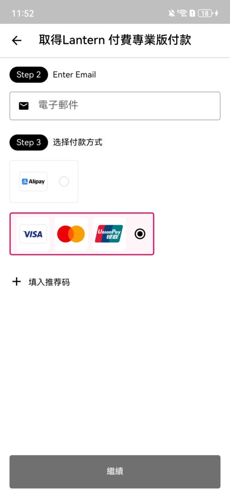 当然,如果你还是决定购买蓝灯的服务,也完全 ok,你可以在应用内选择套餐进行付款。蓝灯加速器的付款方式比较多,支持支付宝信用卡。