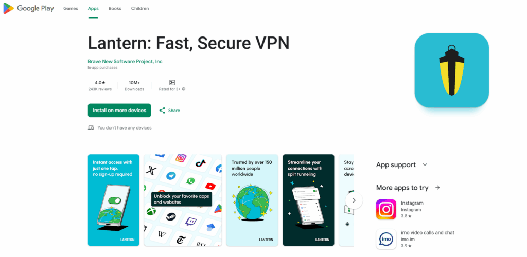 第二,就是跳转到 Google Play 应用商店内下载,下载地址:https://play.google.com/store/apps/details?id=org.getlantern.lantern