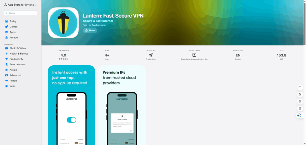 蓝灯加速器 iOS 端口 APP Store 下载地址:https://apps.apple.com/ae/app/lantern-fast-secure-vpn/id1457872372