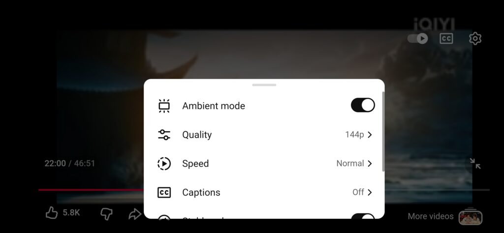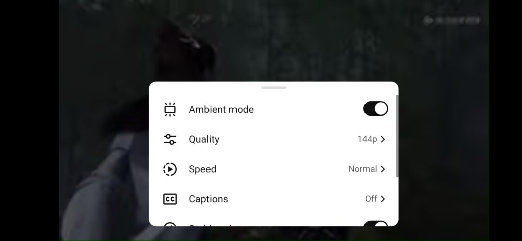 我选择了一个长视频进行全屏播放,可以看到系统给我的反馈画质只有 144p: