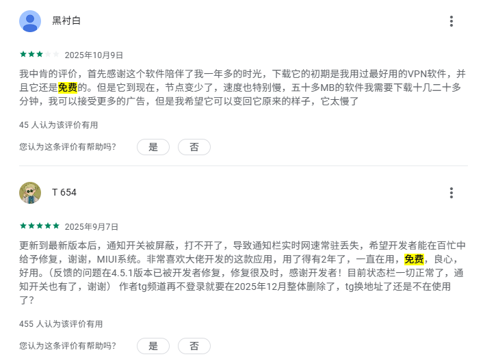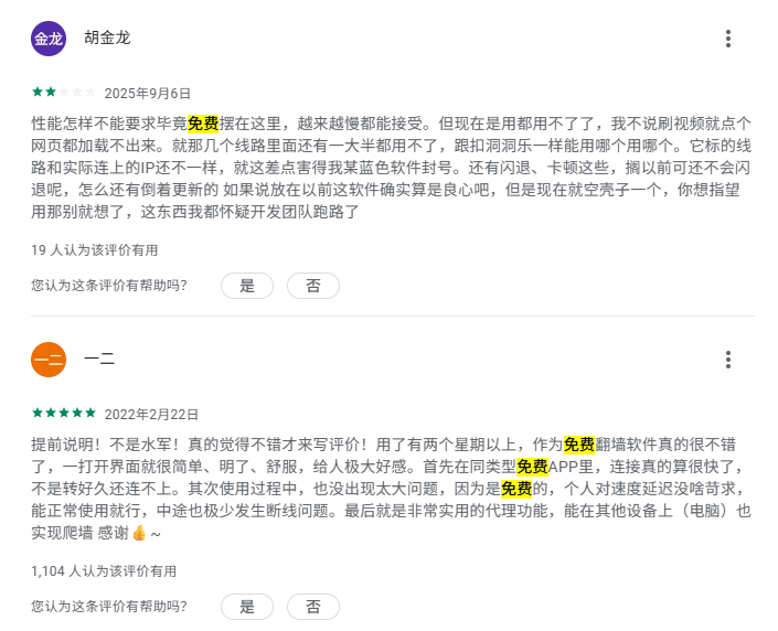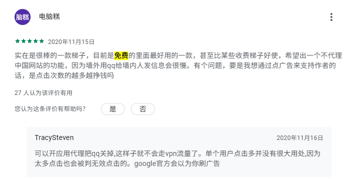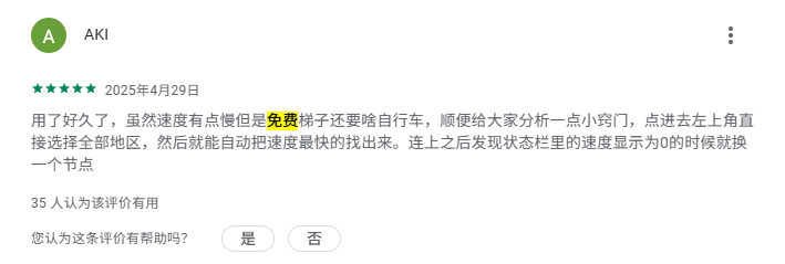 除此之外,我们还可以在 Google Play 应用商城评论区看到大家对于起飞加速器的反馈评价。这些评价也可以印证出起飞加速器完全免费的这一事实: