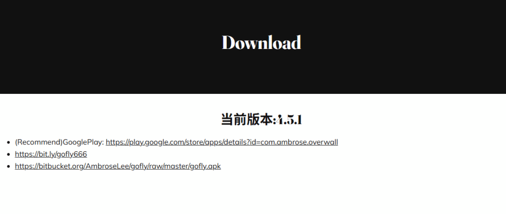其中第一种方法,也是官方标出来最推荐的方法,就是通过 Google Play 应用商城下载。下载地址:https://play.google.com/store/apps/details?id=com.ambrose.overwall