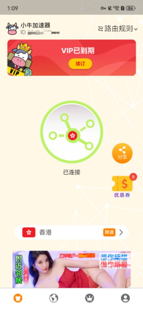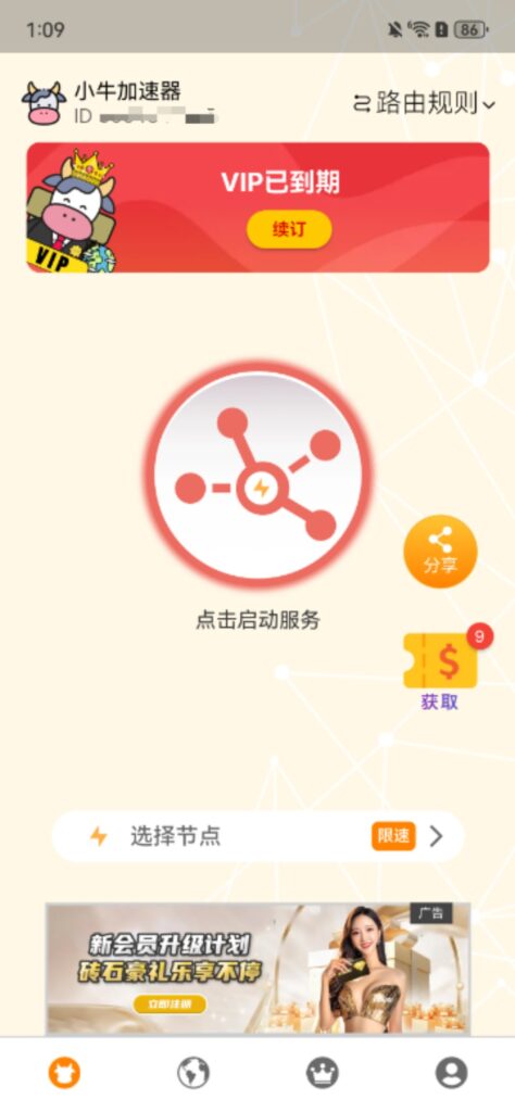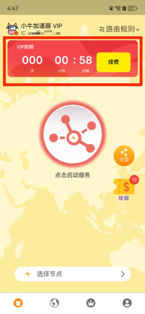 说的更简单一些,就是小牛允许你完全免费的用,但只能连免费线路;如果你想要更好的 VIP 线路,它就让你免费试用1小时,如果你满意,那你就买 VIP,不满意,那你就继续白嫖免费线路。