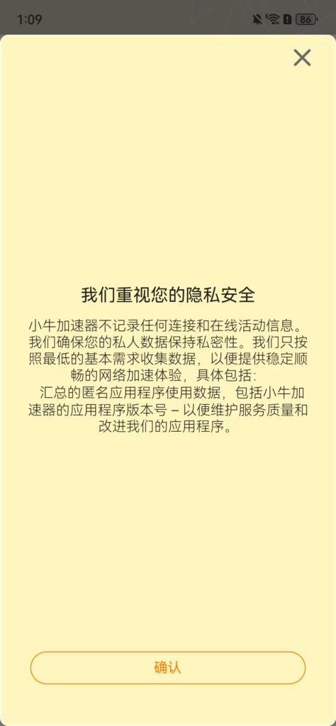 在隐私安全性这方面,我个人是觉得小牛可能是比较缺乏的,他的确承诺自己不会记录任何连接和在线活动信息,但是在官网内、应用内也都没有给出明确的隐私政策,所以怎么看都像只是空话。