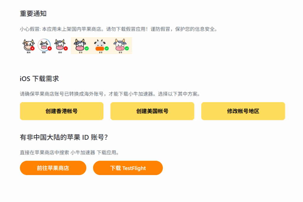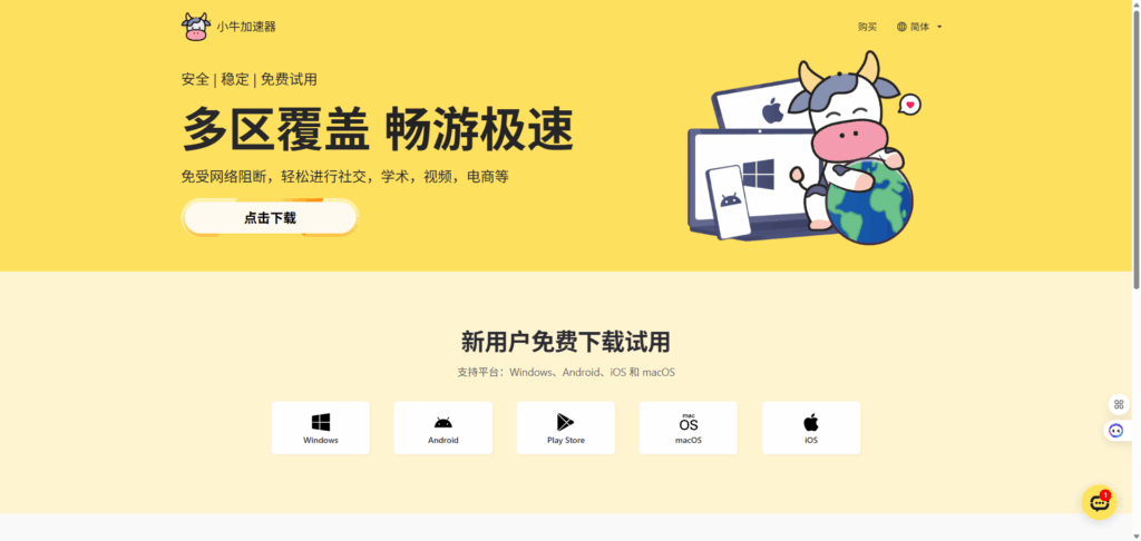 应用上,小牛加速器还是很全面的,可以支持不同的平台进行使用,包括 Windows、Android、iOS、Mac,在官网内找到对应的按钮就能直接下载安装了: