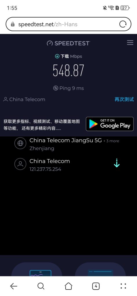 下载速度 | 548.87 Mbps | 170.61 Mbps |