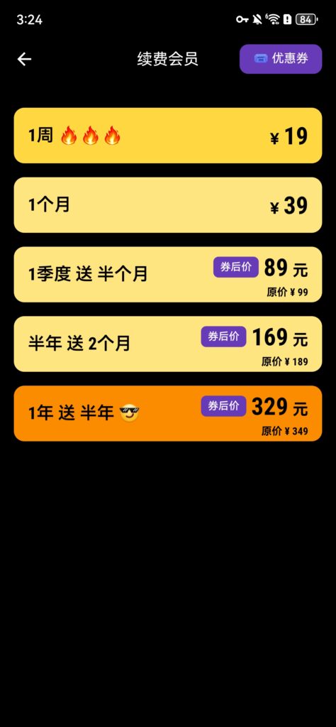 1年会员(元) | 148 | 200 | 329 |